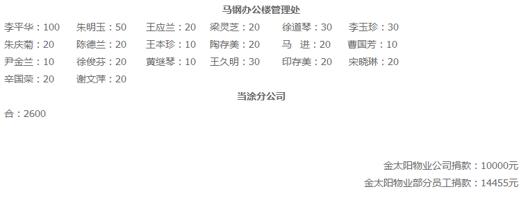 金太陽(yáng)物業(yè)攜全體員工為雅安捐款名單