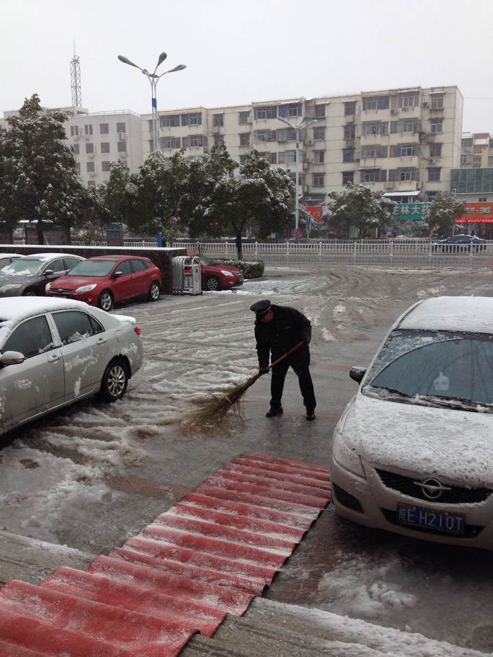 馬鞍山迎來(lái)今年的第二場(chǎng)大雪。大雪讓馬鞍山這座美麗的城市披上了盛裝,但是卻給市民帶來(lái)了安全隱患。雪情就是命令,為保證業(yè)主的安全,方便業(yè)主出行,2月18日清晨,各個(gè)管理處組織員工立即投入到掃雪活動(dòng)中來(lái),氣溫很低,員工卻揮汗如雨,經(jīng)過(guò)很長(cháng)時(shí)間的奮戰,道路積雪全部及時(shí)清掃干凈,確保了大樓道路的暢通無(wú)阻,為業(yè)主們開(kāi)辟了一條條洋溢著(zhù)溫情的通暢方便之路。