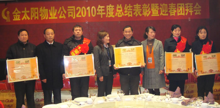 金虎辭舊歲,玉兔迎新春,金太陽(yáng)物業(yè)公司于2011年1月23日下午在夢(mèng)都臨湖隆重舉行2010年度總結表彰暨迎春團拜會(huì )。會(huì )議由工會(huì )主席朱曉軍同志主持,主要分…