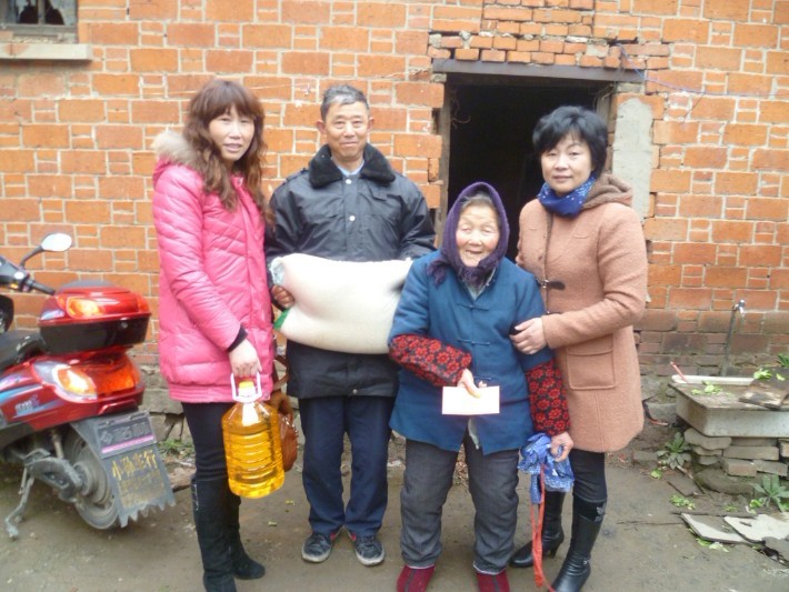 當(dāng)一行人來到丁家山管理處保安員,盛福銀家里時(shí),看到屋內(nèi)昏暗的燈光下,破舊的水壺?zé)鵁崴?,幾只水杯是為公司慰問的領(lǐng)導(dǎo)準(zhǔn)備的。盛福銀是我們公司的優(yōu)秀員工,工作認(rèn)真負(fù)責(zé),從不出差錯(cuò),是管理處主任的好幫手,他用微薄的工資供養(yǎng)著80多歲老母親。他表示對(duì)于金太陽(yáng)的這個(gè)大家庭給予他的溫暖,他無以為報(bào),唯有好好工作,為金太陽(yáng)盡自己的一份力量。