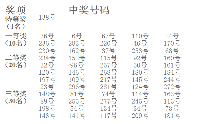 公司2010年度抽獎(jiǎng)活動(dòng)幸運(yùn)號(hào)碼公布