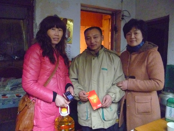 當(dāng)來到困難員工盛福銀家里時,看到屋內(nèi)昏暗的燈光下,破舊的水壺?zé)鵁崴?,幾只水杯是為公司慰問的領(lǐng)導(dǎo)準(zhǔn)備的。盛福銀是我們公司的優(yōu)秀員工,工作認(rèn)真負(fù)責(zé),不出差錯。他是管理處主任看著眼里的好幫手。他用微薄的工資供養(yǎng)著老母親。他表示對于金太陽的這個大家庭給予他的溫暖,他無以為報,唯有好好工作,為金太陽出自己的一份力量。