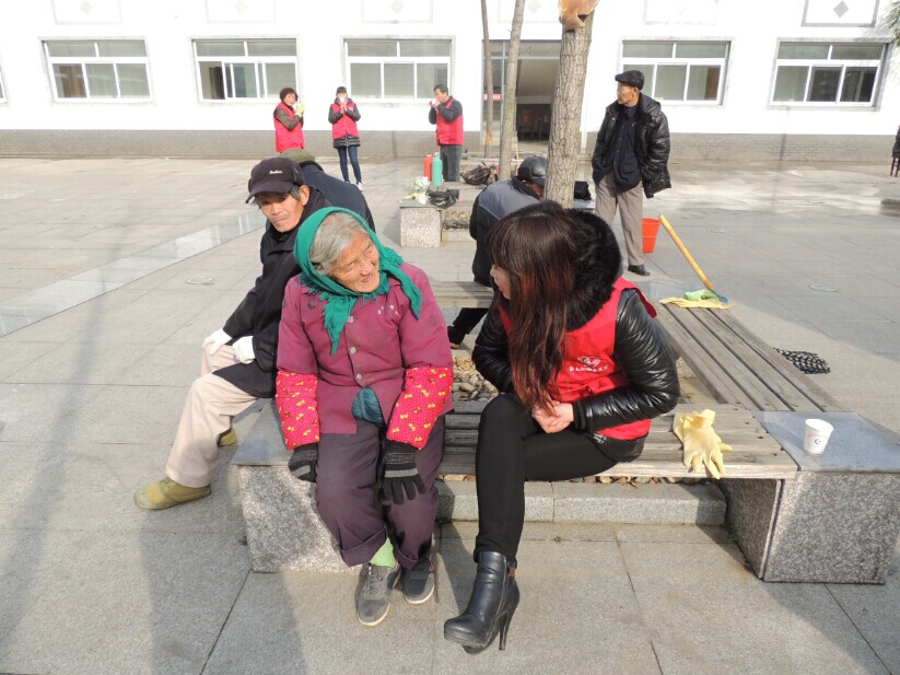 到了敬老院里,進(jìn)行大致的分工后,就開(kāi)始熱火朝天的忙碌起來(lái)。有的幫助擦玻璃,有的忙著打掃墻體欄桿衛(wèi)生,有的清理院內(nèi)樓內(nèi)的場(chǎng)地過(guò)道和綠化帶雜物,還有的義工為行動(dòng)不便的老人打開(kāi)水。雖然天氣干冷,但似乎毫不影響大家伙的干勁,經(jīng)過(guò)一個(gè)多小時(shí)的努力,將敬老院里外打掃的干干靜靜。之后在休息的時(shí)間,義工們?nèi)齼蓛傻馁r院里的老人聊天談心,回憶他們往年的崢嶸歲月,或是近期的樂(lè)呵事兒,在融洽祥和的氛圍中結(jié)束了此次的義工社之行。