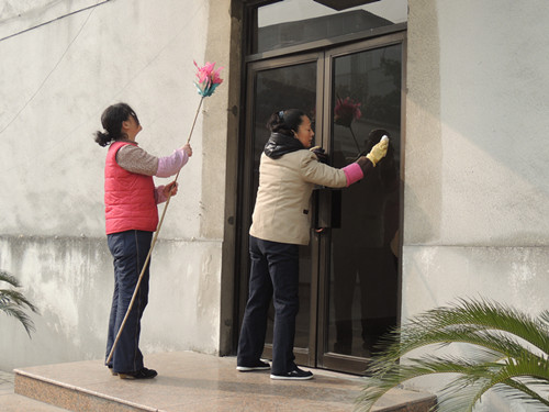 嚴于律己,公司領導帶領員工對花山區(qū)人大政協(xié)辦公樓進行集中保潔