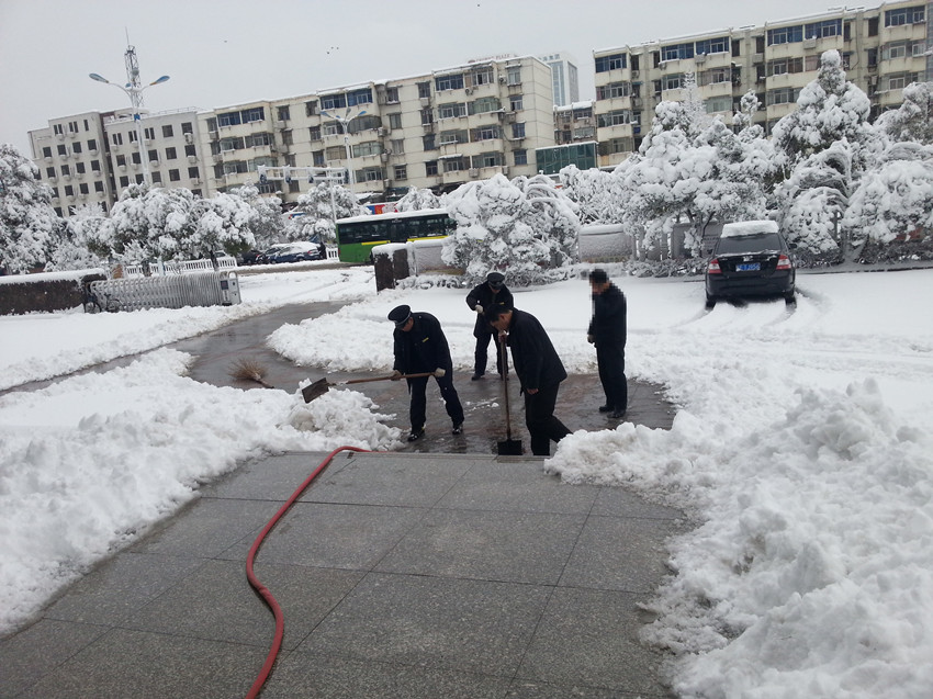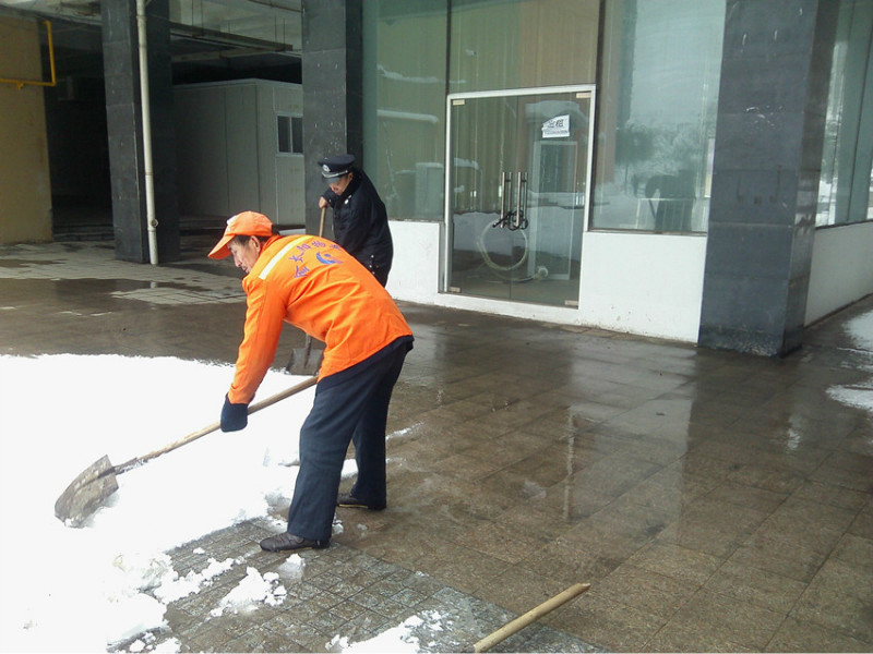 從2月18日晚開始,我市出現(xiàn)降雪、降溫、冰凍天氣,路面積雪給市民安全出行和正常的生產(chǎn)生活帶來了極大不便。為此、金太陽物業(yè)公司緊急下達(dá)通知,組織各管理處人員迅速行動,采取有效措施,清掃積雪,確保過往行人及車輛安全。