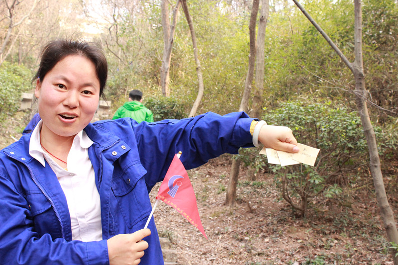 最吸引人的是山頂趣味尋寶活動(dòng),我公司工作人員一大清早就到山頂藏好“寶貝”,靜等尋寶人的到來。這次尋寶和往年不一樣,是等所有女員工集中后聽到哨聲后方可尋寶。“噓”一聲,尋寶開始了,只見同志們有的在草叢和石頭下尋找、有的在窗臺(tái)石縫中查看,有的索性兩眼只看大樹,看看樹上有沒有“寶貝”。同志們拿出工作中鍛煉出來的眼力與細(xì)心,各顯神通,熱火朝天的找尋著。尋到寶的同志們歡呼雀躍,興沖沖地下山兌獎(jiǎng)。沒尋到寶的同志雖然有些失落,但公司也為她們準(zhǔn)備了紀(jì)念品。