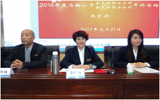 2017年元月21日,馬鞍山市金太陽物業(yè)管理有限公司(金太陽保安服務(wù)有限公司)在馬鞍山市第七中學(xué)多功能報告廳召開2016年度年終總結(jié)表彰會,表彰過去一年里在公司經(jīng)營中做出重要貢獻(xiàn)的先進(jìn)管理處、先進(jìn)管理人員和先進(jìn)員工。公司總經(jīng)理袁夢雪作了年終總結(jié)報告。
