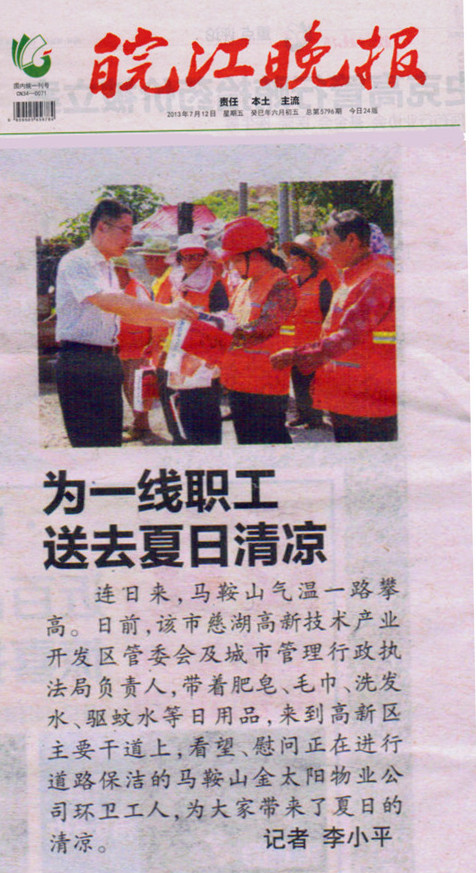 為一線職工送去夏日清涼—來(lái)自《皖江晚報(bào)》報(bào)道
