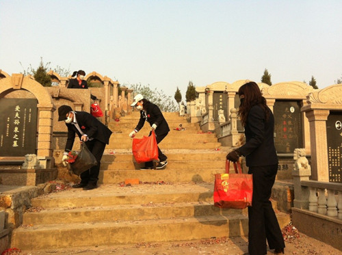 清明將至 管理人員帶頭陵園保潔