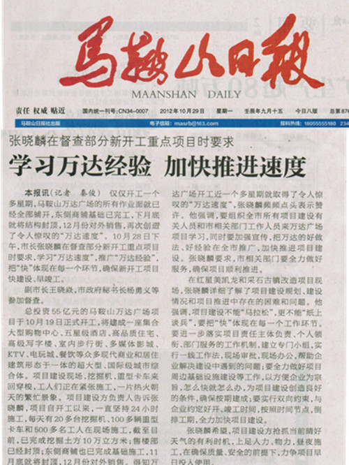 學(xué)習(xí)萬(wàn)達(dá)經(jīng)驗(yàn) 加快推進(jìn)速度——來(lái)自馬鞍山日?qǐng)?bào)的報(bào)道