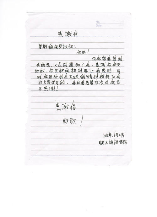 這是一封簡(jiǎn)單,可以說(shuō)是非常質(zhì)樸的感謝信。但其中卻包含了失主對(duì)于我們辛勤工作的安保人員乃至是對(duì)所有金太陽(yáng)職工的精神的肯定和贊揚(yáng)。我們將會(huì)秉持金太…